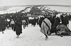 On the evening of 17 January 1943, the Alpine Army Corps commander, General Gabriele Nasci, ordered a full retreat. At this point only the 2nd Alpine Division "Tridentina" was still capable of conducting combat operations. The 40,000-strong mass of stragglers — Alpini and Italians from other commands, plus German and Hungarians — followed the Tridentina division, which led the way westwards to the Axis lines. As the Soviets had already occupied every village bitter battles had to be fought to clear the way. By morning of 28 January the Julia had walked 200 km, fought 20 battles, and spent 11 nights camped out in the middle of the Russian Steppe. Temperatures during the nights were between -30 °C and -40 °C. On 1 February 1943 the remnants of the Alpine Army Corps reached Axis lines. The Julia suffered heavy losses in the breakout: less than a tenth of the division survived (approximately 1,200 survivors of 18,000 troops deployed).[16][20][21][22]