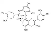 - ↑ Kondo, Kazunari; Kurihara, Masaaki; Fukuhara, Kiyoshi; Tanaka, Takashi; Suzuki, Takashi; Miyata, Naoki; Toyoda, Masatake (2000). "Conversion of procyanidin B-type (catechin dimer) to A-type: Evidence for abstraction of C-2 hydrogen in catechin during radical oxidation". Tetrahedron Letters. 41 (4): 485–488. doi:10.1016/S0040-4039(99)02097-3.