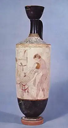 The Persians were decisively defeated at sea by a primarily Athenian naval force at the Battle of Salamis, and on land in 479 BC at the Battle of Plataea.[29] The alliance against Persia continued, initially led by the Spartan Pausanias but from 477 by Athens,[30] and by 460 Persia had been driven out of the Aegean.[31] During this long campaign, the Delian League gradually transformed from a defensive alliance of Greek states into an Athenian empire, as Athens' growing naval power intimidated the other league states.[32] Athens ended its campaigns against Persia in 450, after a disastrous defeat in Egypt in 454, and the death of Cimon in action against the Persians on Cyprus in 450.[33]