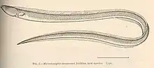 The fringelip snake-eel[2] (Cirrhimuraena playfairii) is an eel in the family Ophichthidae (worm/snake eels).[3] It was described by Albert Günther in 1870.[4] It is a marine, tropical eel which is known from the Indo-Pacific, including Zanzibar, Tanzania, Kosi Bay, South Africa, and the Hawaiian Islands. Its lifestyle is mostly benthic but it sometimes swims at the surface. It is olive brown in colour, with lighter colouring in the ventral region. Males can reach a maximum total length of 39 centimetres (15 in).[3]