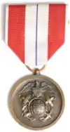 The Coast and Geodetic Survey Meritorious Service Medal was awarded to any member of the U.S. Coast and Geodetic Survey who rendered service of a meritorious character in the line of duty under the jurisdiction of the United States Secretary of Commerce between 8 September 1939 and 28 April 1952, but not of such an outstanding character as to warrant an award of the Coast and Geodetic Survey Distinguished Service Medal. Any commissioned officer of the United States Coast and Geodetic Survey Corps and any ship's officer or member of the crew of any Coast and Geodetic Survey ship was eligible for the Coast and Geodetic Survey Meritorious Service Medal.[1][2] Coast and Geodetic Survey personnel were not eligible for the medal for service they performed during periods in which they were under other jurisdiction, such as that of the United States Department of the Army or the United States Department of the Navy.[1]