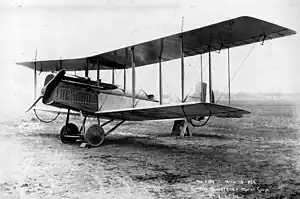 The Curtiss Model R was a utility aircraft produced for the United States Army and Navy during World War I. It was a conventional, two-bay biplane with slightly staggered wings of unequal span. The aircraft was provided with two open cockpits in tandem and fixed tailskid undercarriage, but many were built for the Navy with twin floats replacing the wheels. During the course of the war, Model Rs were used for general liaison and communication duties, as well for observation, training, and as air ambulances. In practice, the Curtiss powerplants supplied with these aircraft proved insufficient and were mostly replaced with Liberty engines. The Navy's Model R-3 floatplane had extended-span, three-bay wings, and was intended for use as a torpedo bomber. Some of these were later fitted with wheeled undercarriage and transferred to the Army as bombers under the designation Model R-9.