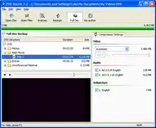 DVD Shrink is a freeware[1] DVD transcoder program for Microsoft Windows that uses a DVD ripper to back up DVD video. The final versions are 3.2.0.15 (English) and 3.2.0.16 (German); all other versions, such as DVD Shrink 2010, are illegitimate.[2] DVD Shrink's purpose is, as its name implies, to reduce the amount of data stored on a DVD with minimal loss of quality, although some loss of quality is inevitable (due to the lossy MPEG-2 compression algorithm). It creates a copy of a DVD, during which the DVD region code is removed, and copy protection may also be circumvented. A stamped DVD may require more space than is available on a writeable DVD, unless shrunk. Many commercially released video DVDs are dual layer (8.5 GB); DVD Shrink can make a shrunk copy which will fit on a single-layer (4.7 GB) writeable DVD, processing the video with some loss of quality and allowing the user to discard unwanted content such as foreign-language soundtracks.