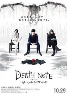 Death Note: Light Up the New World (デスノート Light up the NEW world) is a 2016 Japanese film directed by Shinsuke Sato. The film is based on the manga series Death Note written by Tsugumi Ohba and illustrated by Takeshi Obata and is a sequel to Death Note 2: The Last Name (2006), but features an original story and thematically takes place after the Death Note: New Generation miniseries. It premiered in Japan on October 29, 2016, by Warner Bros.[2][3] It was later released on Philippines on March 15, 2017.[4]