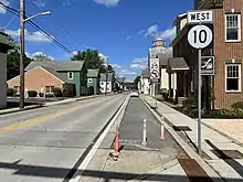 The Lebanon Road portion of the route between US 13 and US 113 was completely widened into a divided highway by 1981.[13] In 1993, the DE 1 freeway was completed in the area of the eastern terminus, with an interchange to that road built that incorporated ramps to both DE 10 and the existing US 113, which merged with DE 1 at this point.[14][15] The US 113 designation was removed from the area in 2004, leaving DE 10 terminating only with DE 1.[16][17] On June 5, 2017, construction began for a roundabout at the junction with DE 15 west of Camden in order to improve safety at the intersection. The roundabout was completed by September 2017.[18]