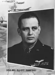 Elliott Roosevelt (September 23, 1910 – October 27, 1990) was an American aviation official and wartime officer in the United States Army Air Forces, reaching the rank of brigadier general. He was a son of President Franklin D. Roosevelt and First Lady Eleanor Roosevelt.
