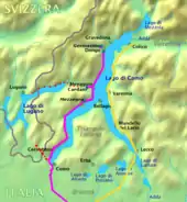 Audisio and Lampredi left Milan for Dongo early on the morning of 28 April 1945 to carry out the orders Audisio had been given by Longo.[35][36] On arrival in Dongo, they met Bellini delle Stelle, who was the local partisan commander, to arrange for Mussolini to be handed over to them.[35][36] Audisio used the nom de guerre of "Colonnello Valerio" during his mission.[35][37] In the afternoon, he, with other partisans, including Aldo Lampredi and Michele Moretti, drove to the De Maria family's farmhouse to collect Mussolini and Petacci.[38][39] After they were picked up, they drove 20 kilometres (12 mi) south to the village of Giulino di Mezzegra.[40] The vehicle pulled up at the entrance of the Villa Belmonte on a narrow road known as via XXIV maggio and Mussolini and Petacci were told to get out and stand by the villa's wall.[35][40][41] Audisio then shot them at 4:10 p.m. with a submachine gun borrowed from Moretti, his own gun having jammed.[35][39][42] There were differences in Lampredi's account and that of Audisio. Audisio presented Mussolini as acting in a cowardly manner immediately prior to his death whereas Lampredi did not. Audisio said he read out a sentence of death, whereas Lampredi omitted this. Lampredi said that Mussolini's last words were "aim at my heart". In Audisio's account, Mussolini said nothing immediately prior to or during the execution.[42][43]