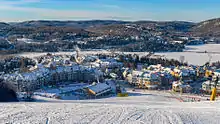 The four calendar seasons in Quebec are spring, summer, autumn and winter, with conditions differing by region. They are then differentiated according to the insolation, temperature, and precipitation of snow and rain.[25] In Quebec City, the length of the daily sunshine varies from 8:37 hrs in December to 15:50 hrs in June; the annual variation is much greater (from 4:54 to 19:29 hrs) at the northern tip of the province.[26] From temperate zones to the northern territories of the Far North, the brightness varies with latitude, as well as the Northern Lights and midnight sun.