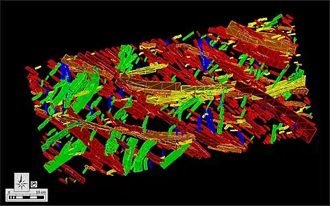 Since the mid-1980s, 2D and 3D computer modeling of fault and fracture networks has become common practice in Earth Sciences.[8] This technology became known as "DFN" (discrete fracture network") modeling,[9] later modified into "DFFN" (discrete fault and fracture network") modeling.[10]