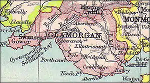 The Lordship of Glamorgan was established by Robert Fitzhamon following the defeat of Iestyn ap Gwrgant, c. 1080.[42][43] The Lordship of Morgannwg was split after it was conquered; the kingdom of Glamorgan had as its caput the town of Cardiff and took in the lands from the River Tawe to the River Rhymney.[42] The Lordship took in four of the Welsh cantrefi, Gorfynydd, Penychen, Senghenydd and Gwynllwg. The area later known as the Gower Peninsula was not under the Lordship of Glamorgan, and became the Gower Lordship which had previously been the cantref of Gŵyr. The lowlands of the Lordship of Glamorgan were manorialized, while much of the sparsely populated uplands were left under Welsh control until the late 13th century.[42] Upon the death of William, Lord of Glamorgan, his extensive holdings were eventually granted to Gilbert de Clare in 1217.[44] The subjugation of Glamorgan, begun by Fitzhamon, was finally completed by the powerful De Clare family,[45] and in 1486 the kingdom was granted to Jasper Tudor.[42]