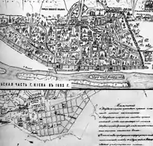 The 1811 Great fire of Podil (Ukrainian: Велика пожежа, Velyka pozhezha) occurred on the morning of July 9, 1811[1] in the historical and commercial neighborhood of Podil in Kiev (Kyiv), the capital of Ukraine. The fire lasted for three days[2] and almost destroyed the whole neighborhood.[3][4] Before the fire, Podil was the city's most densely populated neighborhood; out of 3,672 households in the city, 2,068 were located in the Podil.[5]