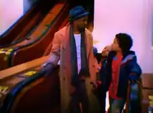 The visually elaborate live-action music video for "Heard 'Em Say" harbors a distinct Christmas theme.[82] Gondry created a surrealistic story set inside the Herald Square Macy's store, which is fantasy styled.[3][85] West plays a homeless single father monitoring his three fictional children, who sneak into the store and stay overnight sometime around the Christmas season.[3][79] Levine plays the role of a guard, granting entry to West and his children after store opening hours. They spend time overnight in the store, which turns into a magical playground.[3][16] West and the children make the most of their time, running around the area as Levine sings his lines on "Heard 'Em Say" and chases them.[3][84] West does some shopping while the youngsters play around the store, which comes to life.[16][79] Within the store, suits dance in the Men's section, Christmas dinners are cooked, sofa beds fold and unfold to the rhythm of the music, a continuous race track comes together piece-by-piece in seconds, and the children drive around on a police bed only to be confronted by the security guard.[3][16][79] A cameo appearance is made by Brion, who plays the song's piano melody on a miniature piano in the toy section.[3][16]