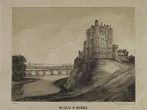 A succession of castles have stood on this site since 1057.[2] The castle is said to have been built by Malcolm III of Scotland (Máel Coluim mac Donnchada). The first Inverness Castle was partially destroyed by King Robert I of Scotland in 1307 who razed its battlements to the ground.[3]