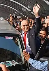 He was elected from Jhapa–7 in the 2013 Constituent Assembly election and became leader of the CPN (UML) parliamentary party on 4 February 2014, defeating party chairman Khanal by a vote of 98 to 75 in the parliamentary party.[22] Oli was subsequently elected as the chairman of CPN (UML) in July 2014 during the party's ninth general convention.[23][24]