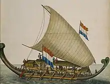 A Dutch kora-kora with mainsail.