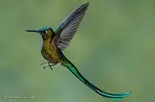 | Scissor-tailed hummingbird | Hylonympha macrocerca | 5,000-6,000[34] | EN[34] | Equals to 3,000-4,000 mature individuals.[34] | ![]() | |