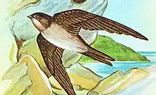 | Plain swift | Apus unicolor | 22,500-60,000[75] | LC[75] | Unknown[75] | Breeding population is confined to Europe, estimated to be 15,000-40,000 mature individuals.[75] | ![]() |