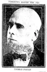| 40 | ![]() | Thomas Foster | 1925 | 1927 | Alderman for St. David Ward (1891–1892, 1894) Alderman for Ward 2 (1900–1909) Toronto Board of Control (1910, 1912–1913, 1915–1917, 1922–1924) |