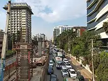 The construction project was inaugurated on 26 June 2016.[16] The July 2016 Dhaka attack took place during the call for tenders for the construction of the line, and led to some companies withdrawing from the tender process due to security concerns. Seven Japanese officials associated with the project died in the attack.[5] About 4 days after the attack, Gowher Rizvi, foreign affairs adviser of the country, said that the attack would not have any negative impact on construction. He wanted to wait a maximum of three months for foreign officials who left after the attack.[17] Six months later,[18] with the assurance of the government, the contractors started the construction work.[5] A detailed design of the line was prepared in August 2016.[1] In September 2016, works related to the construction of the line's depot at Diabari were started.[19] On 2 August 2017, the first phase of construction of the MRT Line 6 was officially started.[20]