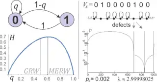 In contrast to GRW, the MERW transition probabilities generally depend on the structure of the entire graph (are nonlocal). Hence, they should not be imagined as directly applied by the walker – if random-looking decisions are made based on the local situation, like a person would make, the GRW approach is more appropriate. MERW is based on the principle of maximum entropy, making it the safest assumption when we don't have any additional knowledge about the system. For example, it would be appropriate for modelling our knowledge about an object performing some complex dynamics – not necessarily random, like a particle.