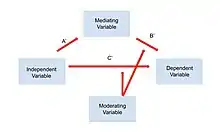 In addition to the models mentioned above, a new variable can also exist which moderates the relationship between the independent variable and mediator (the A path) while at the same time have the new variable moderate the relationship between the independent variable and dependent variable (the C Path).[1]