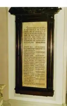 The ship's mainly Italian and French restaurant workers and their boss, Luigi Gatti, all perished in the disaster. They are commemorated by the Gatti Memorial in St Joseph's Church.[4]
