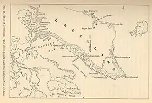 ![]() Payer Peak in a map of Greenland by George Frederick Wright (1838–1921). |