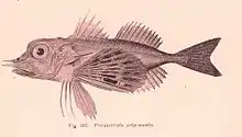 - Pterygotrigla leptacanthus Günther, 1880 (Black-finned gurnard)