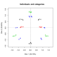 - ↑ Husson F., Lê S. & Pagès J. (2009). Exploratory Multivariate Analysis by Example Using R. Chapman & Hall/CRC The R Series, London. ISBN 978-2-7535-0938-2