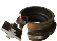 Photo of friction welded API 5L X46 pipeline with diameter of 220 mm and wall thickness of 8 mm.[9] The typically flash is visible on the image. However, there's the problem:Internal significant flash is visible here and can be difficult to remove in pipline.