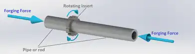 • Step 4, upsetting stage: the welded elements are still forging by forge pressure (pressed down),