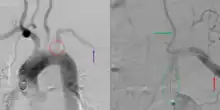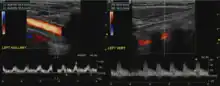 Subclavian steal syndrome (SSS), also called subclavian steal steno-occlusive disease, is a constellation of signs and symptoms that arise from retrograde (reversed) blood flow in the vertebral artery or the internal thoracic artery, due to a proximal stenosis (narrowing) and/or occlusion of the subclavian artery. This flow reversal is called the subclavian steal or subclavian steal phenomenon, regardless of signs/symptoms being present.[1] The arm may be supplied by blood flowing in a retrograde direction down the vertebral artery at the expense of the vertebrobasilar circulation. It is more severe than typical vertebrobasilar insufficiency.