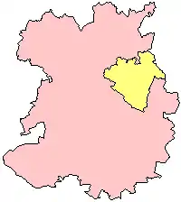 Telford and Wrekin (yellow) in the ceremonial and historic county of Shropshire.