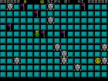 Furthermore, a grid location may contain a skull, which kills the player should they move onto it; or a flag that increases the player's score when collected.