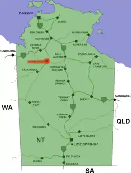 9. 1 2 "Localities within Victoria River sub-region (CP 5096)". NT Place Names Register. Northern Territory Government. Retrieved 6 March 2020.