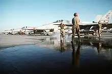 On 1 February 1966, The squadron was again redesignated as Marine All Weather Fighter Squadron 333 (VMF(AW)-333) when they received new all-weather versions of the F-8 Crusader. The squadrons last name change came on June 20, 1966 when they became Marine Fighter Attack Squadron 333 (VMFA-333) as they transitioned to the F-4 Phantom II. On June 5, 1972, VMFA-333 departed Naval Air Station Oceana for a six month deployment on board the USS America (CVA-66). The America arrived at Yankee Station off the coast of South Vietnam on July 13, 1972 and VMFA-333 began flying combat sorties the next day.[1] It was during this deployment that the squadron got its only air-to-air kill when Major Lee T Lasseter, USMC along with his RIO, Capt. John D. Cummings shot down a MiG-21 over North Vietnam, near Hanoi. After the shoot down both aircraft were damaged by flak and an SA-2 SAM, which hit 5526 in the tail section. Close to running out of fuel and with 5526 on fire from the SAM hit, the pilots ejected just south of Haiphong Harbor. The incident was also the first and only all-Marine kill during the Vietnam War. Two other Marines shot down MiGs but they were on exchange with the Air Force.[2] Until 1978 the squadron remained affiliated with Carrier Air Wing 8 and made a 1976 deployment aboard the USS Nimitz (CVN-68). Major Lee T. Lasseter later assumed command of VMFA-333 and was named Marine Aviator of the year for 1972.